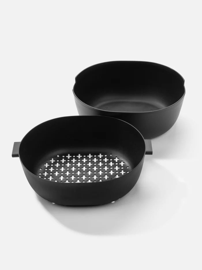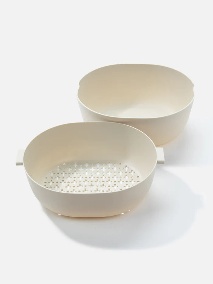 Measuring 12.6 x 4.6 inches, this Everyday Strainer makes kitchen prep easier. It's versatile and effectively drains pasta, vegetables, and more. Durable and easy to clean, this strainer is a practical essential for everyday cooking.